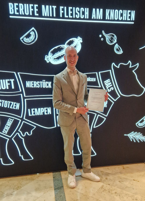 Michael Minder hat die Berufsprüfung zum Betriebsleiter Fleischwirtschaft mit eidgenössischem Fachausweis mit der hervorragenden Note 5.2 erfolgreich